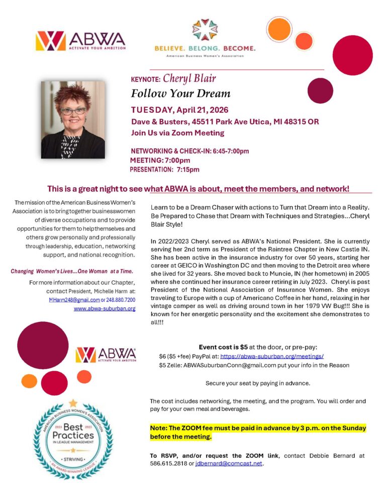 ABWA Suburban Connection Meeting Info:
